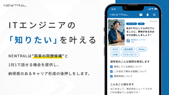 『NEWTRAL』は、ITエンジニアの早期離職を回避すべく、「将来の同僚」から1対1で話を聞け…