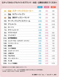 TOP3は昨年と変わらず、若者に絶対的な人気平成28年9月12日、アルバイト求人情報サービス「an」は、人事・採用担当者のための情報サイト「anレポート」において、やってみたいアルバイトブランドについて、15~24歳のアルバイト経験およびアルバイト就業意向がある若者…