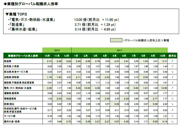 バイリンガルのための転職・求人情報サイトを運営ダイジョブ・グローバルリクルーティング株式会社は、2017年10月末時点のグローバル転職求人倍率をまとめ、そのレポートを11月30日に発表した。