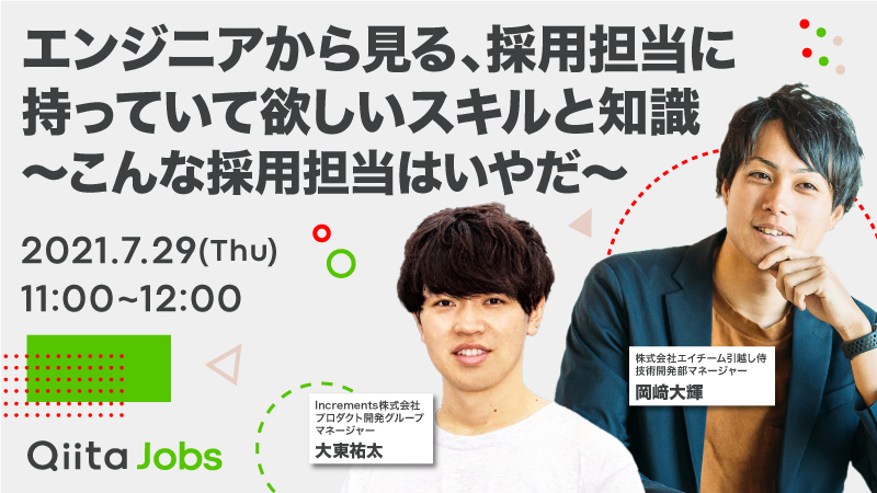 エンジニアにとって魅力的に見える企業とはIncrements株式会社は、2021年7月29日、無料オンラインセミナー『エンジニアから見る、採用担当に持っていて欲しいスキルと知識~こんな採用担当はいやだ~』を開催する。