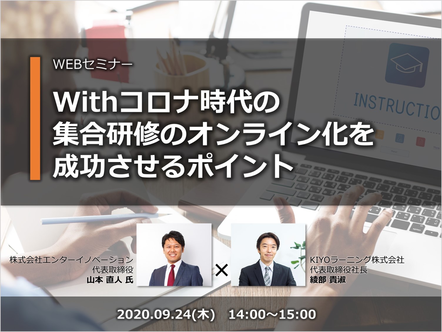 山本直人氏とのインタビュー形式で開催KIYOラーニング株式会社は、2020年9月24日、無料Webセミナー『Withコロナ時代の集合研修のオンライン化を成功させるポイント』を開催する。