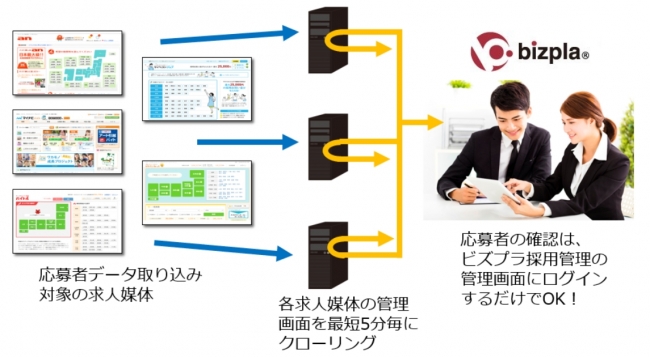 応募者データを最短5分間隔で高速反映株式会社フューチャートは、2018年3月20日、同社の採用管理システム『bizpla(ビズプラ)採用管理』について、WEB求人媒体からの応募者データ自動取り込み技術により特許を取得したと発表した。