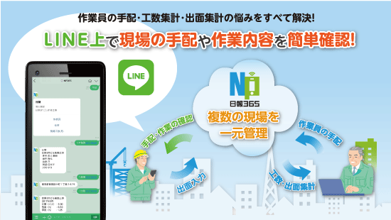 工事現場業務の手配情報確認などが可能に株式会社オーク情報システムは、2018年1月17日、同社の日報・出面システム『日報365』にLINEとの連携機能を追加したと発表した。